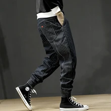 Japanese Style Fashion Men Jeans Vintage Designer Stripe Casual Cargo Pants Men Harem Trousers Loose Fit Hip Hop Joggers Pants