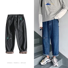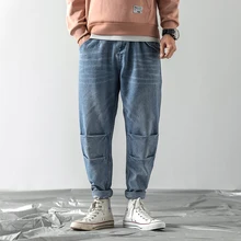 2019 Japanese Men’s Trend Haren Casual Pants Cowboy Baggy Homme Classic Cargo Pocket Wash Jeans men Blue Biker Denim Trousers