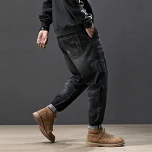 Autumn Fashion Streetwear Men Jeans Loose Fit Harem Jeans Big Size 28-42 Denim Cargo Pants Slack Bottom Hip Hop Jogger Jeans Men