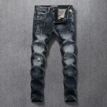 Buy Italian Vintage Men Jeans Streetwear Black Destroyed Elastic Ripped Jeans Men High Quality Brand Designer Skinny Jeans Homme up to 2098-12-31, and You will Save US $44.71 or 52%, Becuase You Just Pay for 41.27 not Full Price for 85.98