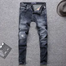 Buy Korean Style Fashion Men Jeans Loose Fit Vintage Designer Retro Wash Harem Pants Spliced Ripped Hip Hop Jeans Men Pencil Pants up to 2098-12-31, and You will Save US $29.11 or 52%, Becuase You Just Pay for 26.87 not Full Price for 55.98