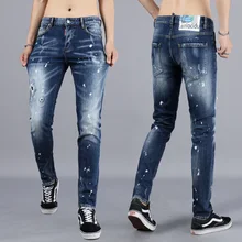 Buy Fashion Streetwear Men Jeans Retro Blue White Wash Slim Fit Ripped Jeans Men Top Quality Paint Designer Brand Skinny Jeans Homme up to 2098-12-31, and You will Save US $36.03 or , Becuase You Just Pay for 41.27 not Full Price for 85.98