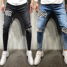 Buy Badge Patchwork Mens Jeans Streetwear Gray Blue Skinny Jean Pants for Men PSMJ77 up to 2098-12-31, and You will Save US $19.84 or 36%, Becuase You Just Pay for 35.26 not Full Price for 55.10