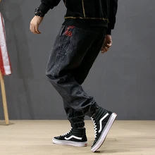Buy Fashion Streetwear Men Jeans Loose Fit Embroidery Designer Harem Pants Blue Black Color Slack Bottom Hip Hop Jeans Men Joggers up to 2098-12-31, and You will Save US $5.29 or 15%, Becuase You Just Pay for 25.91 not Full Price for 53.98