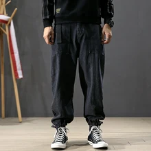 Japanese Style Fashion Men Jeans Khaki Loose Fit Slack Bottom Cargo Pants Harem Trousers Streetwear Hip Hop Pants Men Joggers