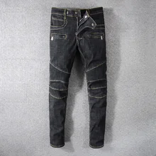 Images for Fashion Streetwear Men Jeans Vintage Black Slim Fit Spliced Designer Hip Hop Jeans Men Denim Cargo Pants Biker Jeans Size 29-42
