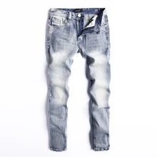 Related Product for Fashion Streetwear Men Jeans Vintage Black Slim Fit Spliced Designer Hip Hop Jeans Men Denim Cargo Pants Biker Jeans Size 29-42