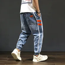 Buy Fashion Streetwear Men Jeans Loose Fit Retro Blue Big Size 28-42 Denim Cargo Pants Harem Jeans Stripe Designer Hip Hop Jeans Men up to 2098-12-31, and You will Save US $28.61 or 53%, Becuase You Just Pay for 25.37 not Full Price for 53.98