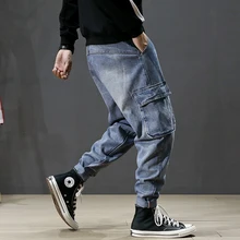 Buy Korean Fashion Men Jeans High Quality Loose Fit Cargo Pants Hip Hop Joggers Jeans Men Japanese Streetwear Spliced Harem Pants up to 2098-12-31, and You will Save US $29.11 or 52%, Becuase You Just Pay for 26.87 not Full Price for 55.98