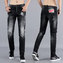 Buy Italian Style Fashion Men Jeans Black Color White Wash Ripped Jeans Men High Quality Brand Designer Elastic Skinny Jeans Homme up to 2098-12-31, and You will Save US $44.71 or 52%, Becuase You Just Pay for 41.27 not Full Price for 85.98