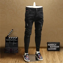 Buy CYSINCOS Trendy Men Skinny Jeans Biker Destroyed Frayed Fit Denim Ripped Denim Pants Side Stripe Pencil Pants Hip Hop Streetwear up to 2098-12-31, and You will Save US $4.21 or 39%, Becuase You Just Pay for 6.58 not Full Price for 10.79