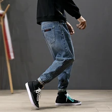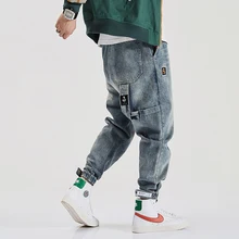 Related Product for Japanese Style Fashion Men Jeans Spliced Loose Fit Cargo Pants Harem Jeans Embroidery Designer Hip Hop Joggers Jeans Men