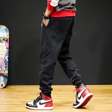 Buy Japanese Style Fashion Men Jeans Black Spliced Designer Loose Fit Cargo Pants Harem Trousers Size 28-44 Hip Hop Jogger Jeans Men up to 2098-12-31, and You will Save US $35.35 or 52%, Becuase You Just Pay for 26.87 not Full Price for 55.98