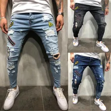 Buy American Streetwear Men Jeans High Quality Patchwork Destroyed Ripped Jeans Men Punk Pants Designer Hip Hop Black Skinny Jeans up to 2098-12-31, and You will Save US $29.11 or 52%, Becuase You Just Pay for 41.27 not Full Price for 85.98