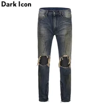 Buy Dark Icon Stonewashed Ripped Ankle Zipper Dirty Jeans High Street Jeans Men Regular Style Destroyed Men’s Pants up to 2098-12-31, and You will Save US $31.9 or 45%, Becuase You Just Pay for 38.99 not Full Price for 70.89