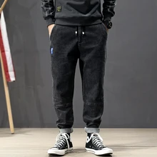Japanese Style Fashion Men Jeans Blue Color Stripe Spliced Loose Fit Harem Pants hombre Streetwear Hip Hop Joggers Jeans Men