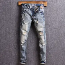 Offer Description for Fashion Streetwear Men Jeans Retro Wash Slim Fit Destroyed Ripped Jeans Men Biker Pants Vintage Designer Hip Hop Jeans Homme