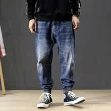 Buy Fashion Streetwear Men Jeans Blue Color Size 28-42 Loose Fit Cargo Pants Harem Jeans Men Japanese Hip Hop Joggers Jeans Homme up to 2098-12-31, and You will Save US $12.73 or 43%, Becuase You Just Pay for 25.37 not Full Price for 53.98