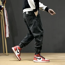 Fashion Streetwear Men Jeans Blue Color Size 28-42 Loose Fit Cargo Pants Harem Jeans Men Japanese Hip Hop Joggers Jeans Homme