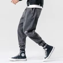 Related Product for Big Size 28-42 Fashion Men Jeans Retro Black Gray Denim Cargo Pants Streetwear Loose Fit Vintage Stirpe Hip Hop Jogger Jeans Men