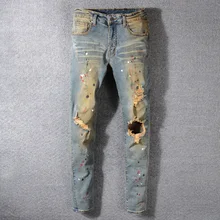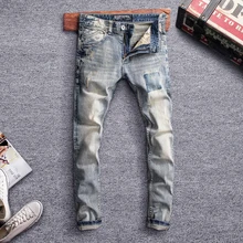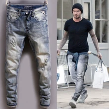 Buy Vintage Designer Men’s Jeans Punk Style Denim Pants Dark Blue Color Slim Fit Classical Ripped Jeans For Men Hip Hop Jeans homme up to 2098-12-31, and You will Save US $35.5 or 53%, Becuase You Just Pay for 31.48 not Full Price for 66.98
