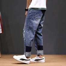 Related Product for Fashion Streetwear Men Jeans Loose Fit Multi Pockets Cargo Pants Casual Harem Trousers Hip Hop Joggers Pants Men