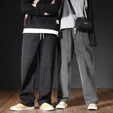 Related Product for Autumn Fashion Men Jeans Loose Fit Spliced Designer Elastic Waist Corduroy Harem Pants Men Japanese Style Hip Hop Joggers Pants