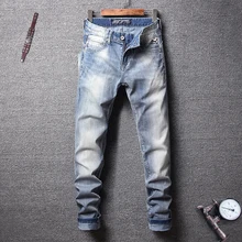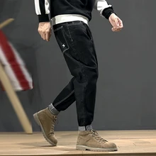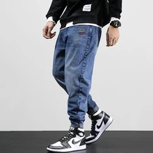 Korean Style Fashion Men Jeans Loose Fit Embroidery Designer Blue Harem Pants Japanese Vintage Hip Hop Jeans Men Pencil Pants