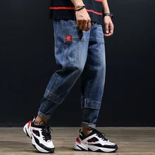 Buy Japanese Style Fashion Men Jeans Blue Loose Fit Harem Pants hombre Streetwear Spliced Designer Hip Hop Jeans Men Pencil Pants up to 2098-12-31, and You will Save US $6.24 or 20%, Becuase You Just Pay for 27.83 not Full Price for 57.98