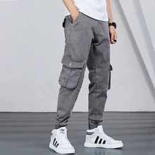 Japanese Style Fashion Men Jeans Loose Fit Size 28-42 Big Pocket Cargo Pants Streetwear Slack Bottom Harem Joggers Jeans Men