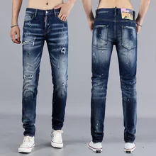 Buy High Street Fashion Men Jeans Retro Blue Paint Designer Ripped Jeans Men Elastic Top Quality Hip Hop Skinny Jeans Homme up to 2098-12-31, and You will Save US $44.71 or 52%, Becuase You Just Pay for 41.27 not Full Price for 85.98