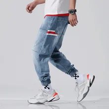 Buy Large Size Fashion Streetwear Men Jeans Blue Color Loose Spliced Slack Bottom Harem Pants Patch Stripe Hip Hop Joggers Jeans Men up to 2098-12-31, and You will Save US $30.15 or 52%, Becuase You Just Pay for 27.83 not Full Price for 57.98