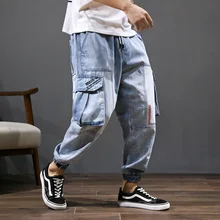 Buy Japanese Style Fashion Men Jeans Loose Fit Blue Color Harem Jeans Big Pocket Slack Bottom Cargo Pants Streetwear Hip Hop Joggers up to 2098-12-31, and You will Save US $19.75 or 52%, Becuase You Just Pay for 27.83 not Full Price for 57.98