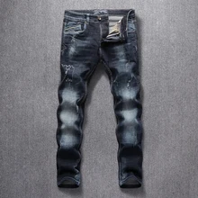 Buy Brand Clothing Men`s Blue Wings Print Jeans Pants Hip Hop Waterwashed Mid Stripe Slim Fit Denim Ripped Dark Jeans Men RL632 up to 2098-12-31, and You will Save US $36.03 or 53%, Becuase You Just Pay for 31.95 not Full Price for 67.98