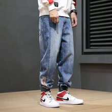 Buy Fashion Streetwear Men Jeans Loose Fit Stripe Designer Cargo Pants Harem Jeans Men Japanese Style Hip Hop Joggers Jeans Homme up to 2098-12-31, and You will Save US $28.07 or 52%, Becuase You Just Pay for 25.91 not Full Price for 53.98