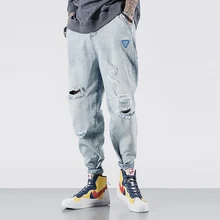 Buy Fashion Streetwear Men Jeans Blue Color Loose Fit Side Stripe Spliced Harem Jeans Men Cargo Pants Slack Bottom Hip Hop Joggers up to 2098-12-31, and You will Save US $28.07 or 52%, Becuase You Just Pay for 25.91 not Full Price for 53.98