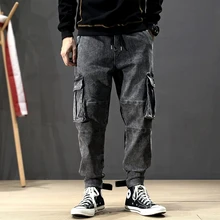 Offer Description for Japanese Style Fashion Men Jeans Casual Joggers Pants Black Loose Fit Designer Hip Hop Pants hombre Streetwear Cargo Pants Men