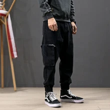 Related Product for Japanese Style Fashion Men Jeans Casual Joggers Pants Black Loose Fit Designer Hip Hop Pants hombre Streetwear Cargo Pants Men
